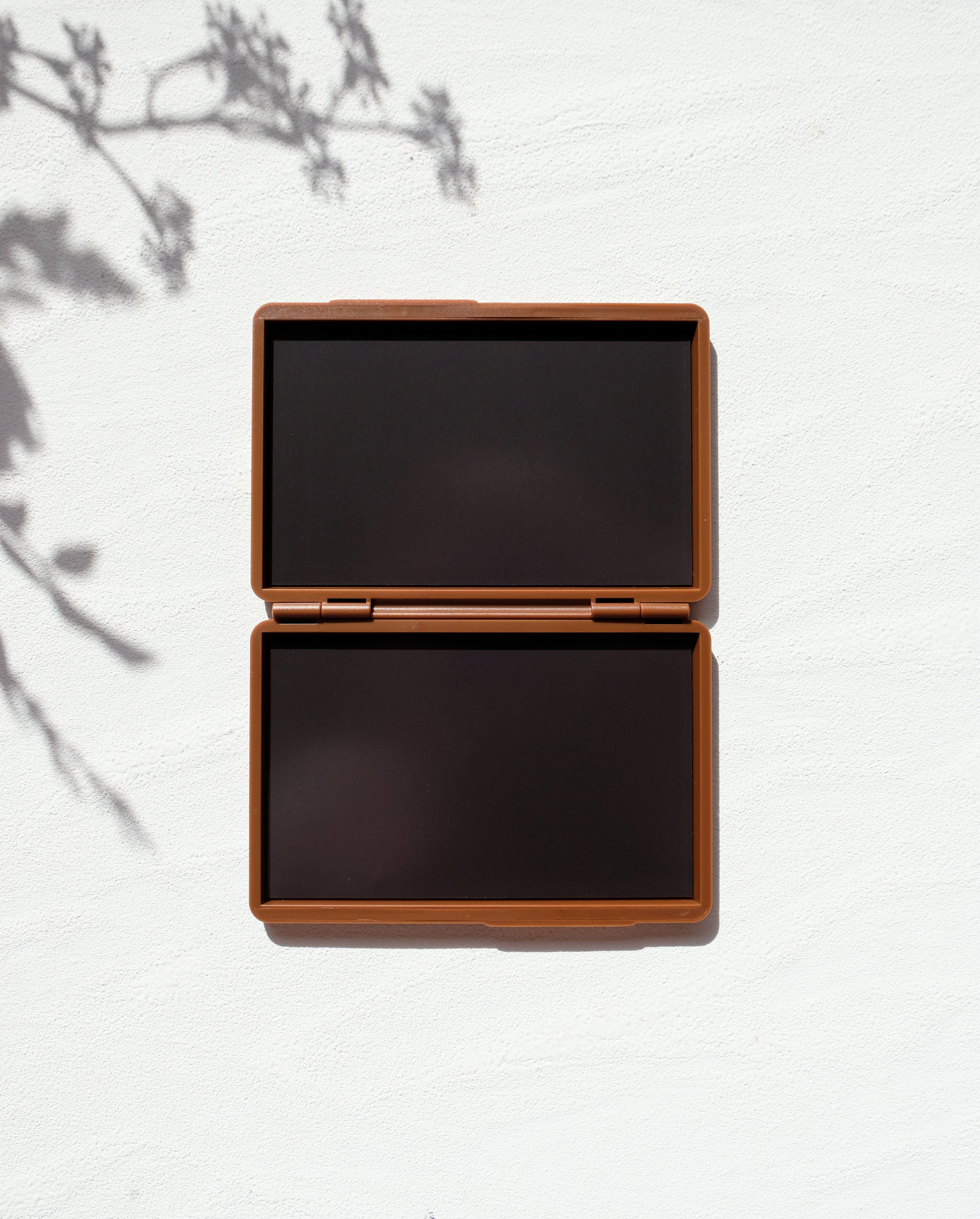Empty Double Sided Magnetic Makeup Palette in an aesthetic light chocolate brown with a matte finish - limited edition